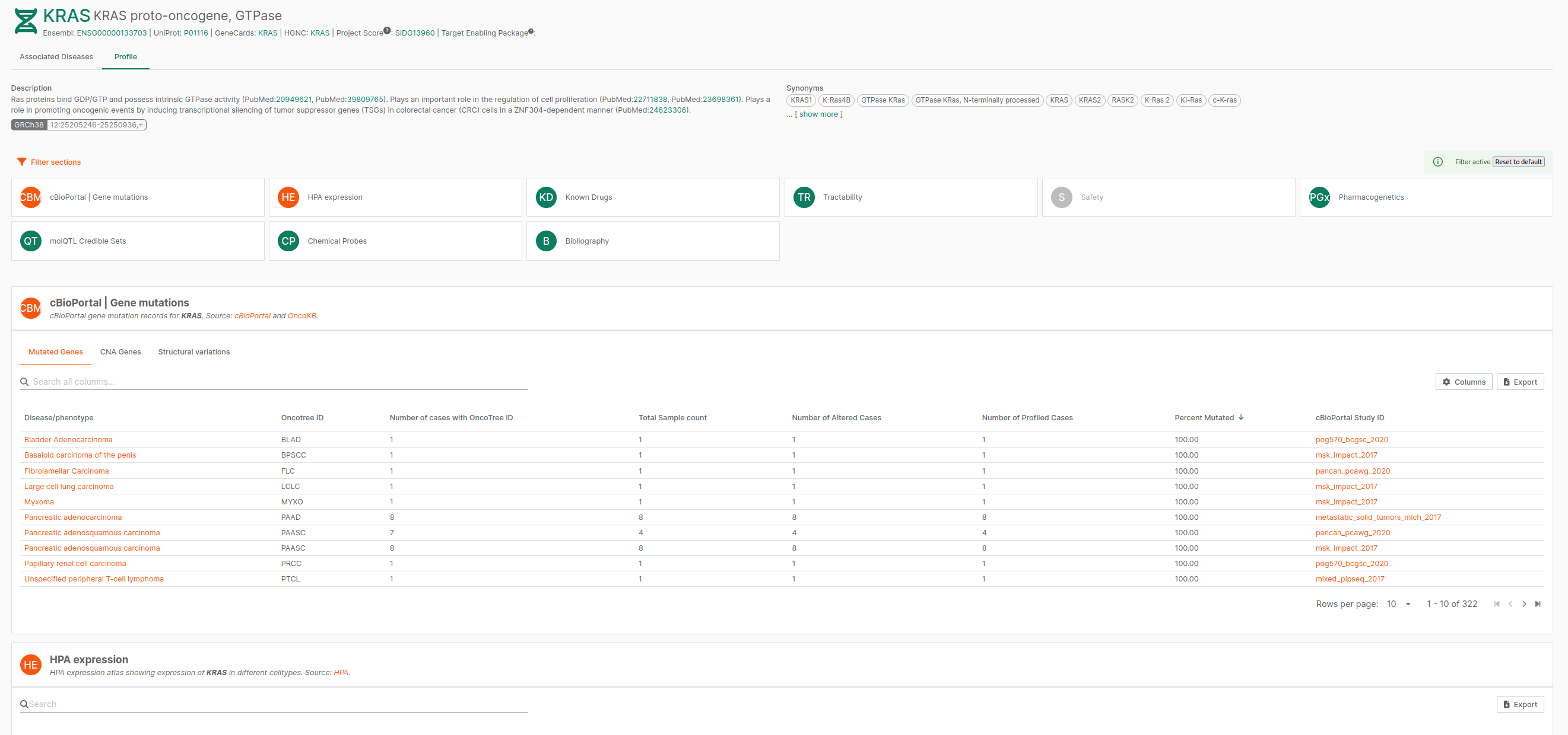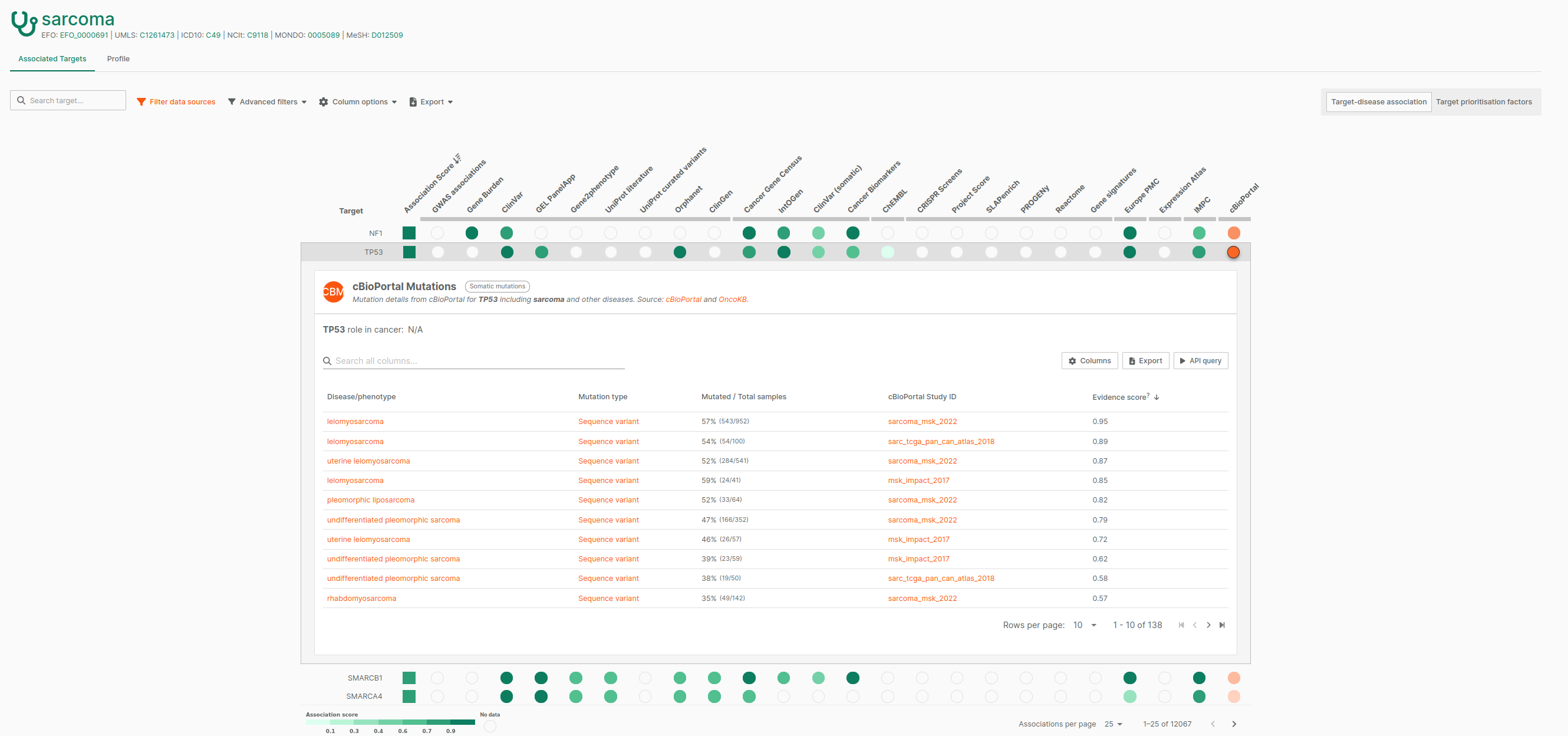 The Open Targets Platform (OTP) is a powerful resource that connects potential drug targets to diseases using comprehensive evidence from multiple data sources. The data sources are highly diverse, including genetic evidence, expression data, pathway and drug databases, and many other sources of information. The Association Page displays one-to-many relationships between targets and diseases based on integrated evidence, and a Profile Page that delivers detailed, source-rich information about specific targets or diseases. These features support researchers and bioinformaticians in making data-driven decisions for drug discovery and development.